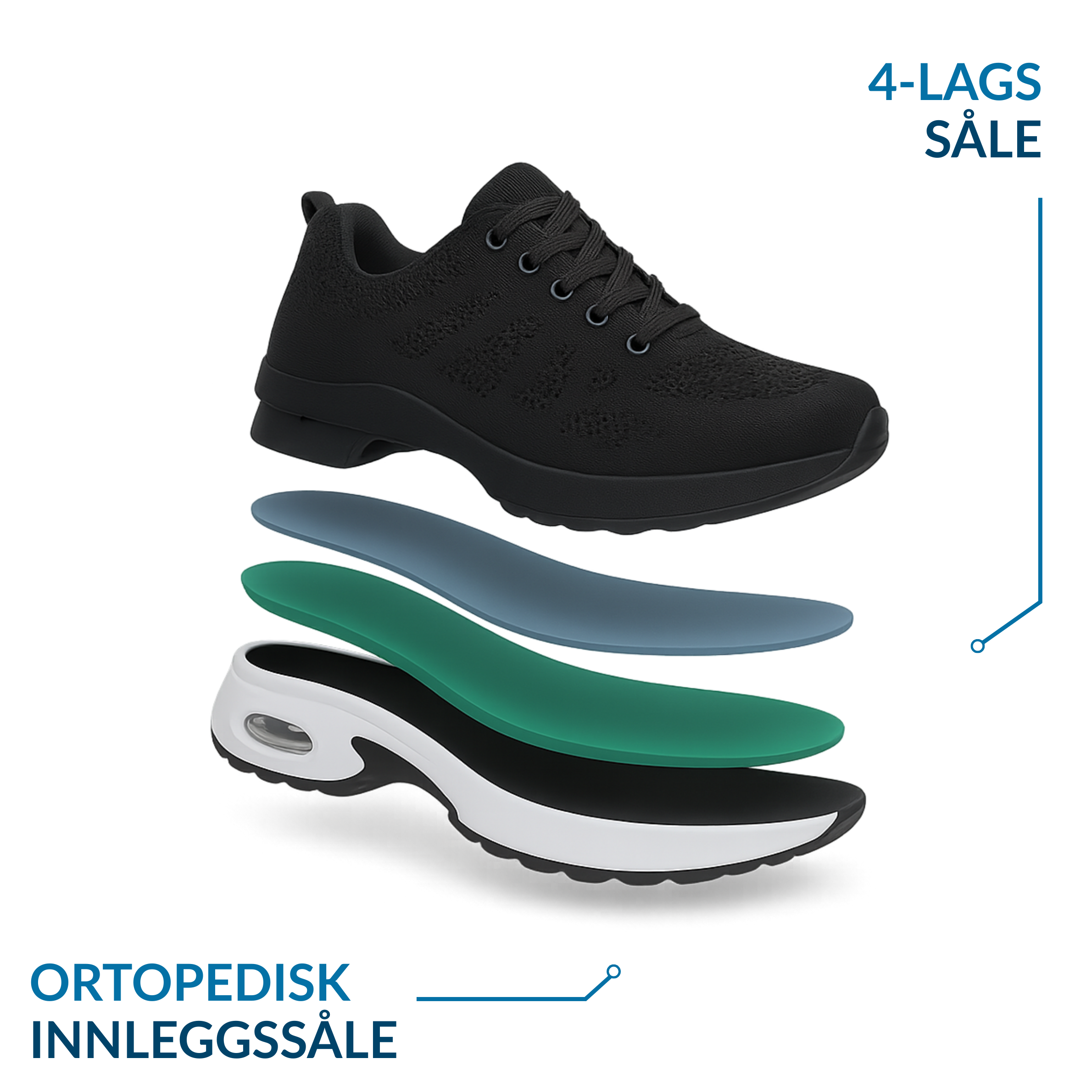 Våre ortopediske sko har en medisinsk konstruert 4-lags ortopedisk innersåle som gir føttene dine enestående støtte og komfort.